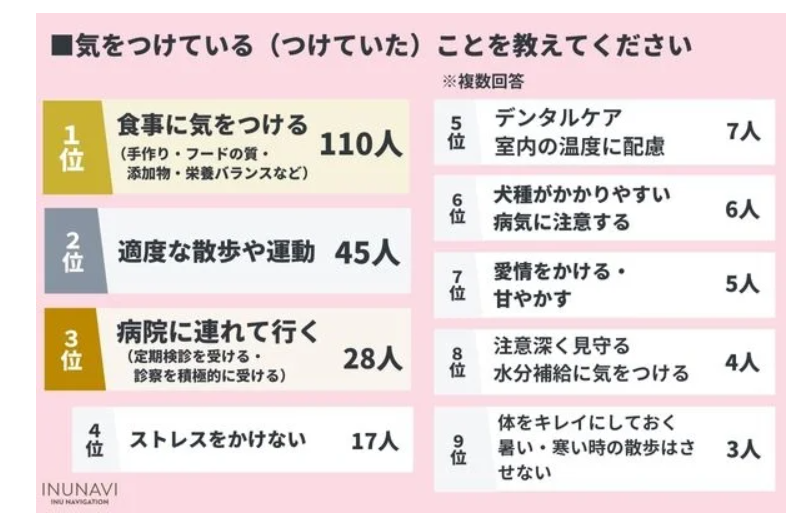 多くの飼い主さんが愛犬の長生きのために色々考えて気を配っているようです。