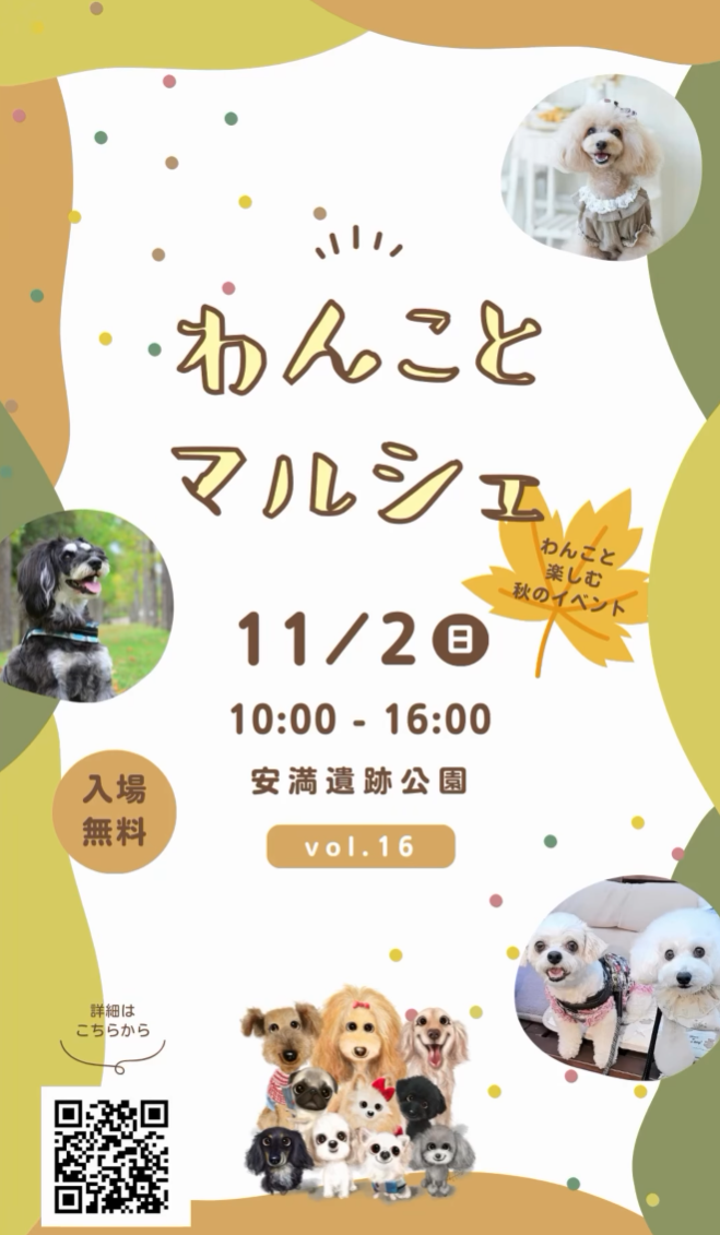 - ▶②2025年11月2日(日)開催!「わんことマルシェ vol.16」in 安満遺跡公園 【大阪府高槻市】