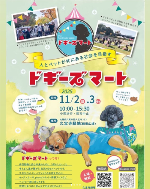 - ▶③2025年11月2日(日)~3日(月・祝)開催!「Doggies Mart ドギーズマート ’25」in 久宝寺緑地 【大阪府八尾市】