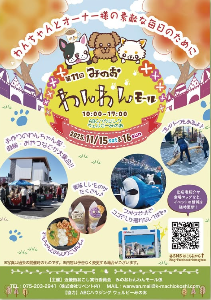 - ▶⑥2025年11月15日(土)~16日(日)開催!「第11回 みのおわんわんモール」in ABCハウジング ウェルビーみのお【大阪府箕面市】