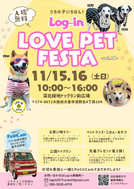 ⑦ 2025年11月15日(土)~16日(日)開催!「Log-in LOVE PET FESTA-vol.19-」in 深北緑地【大阪府大東市】