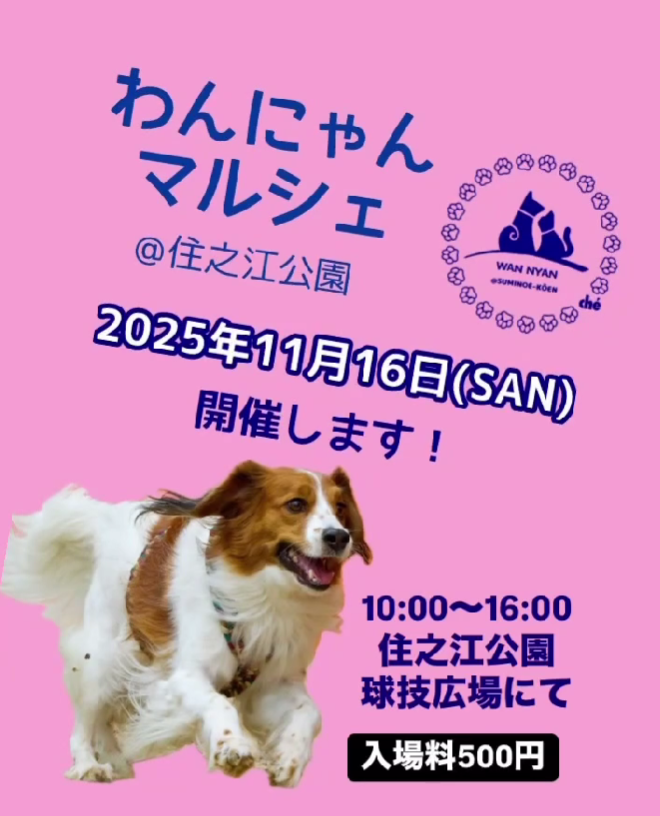 - ▶⑧2025年11月16日(日)開催!「わんにゃんマルシェ@住之江公園 vol.6」in 住之江公園【大阪府大阪市】