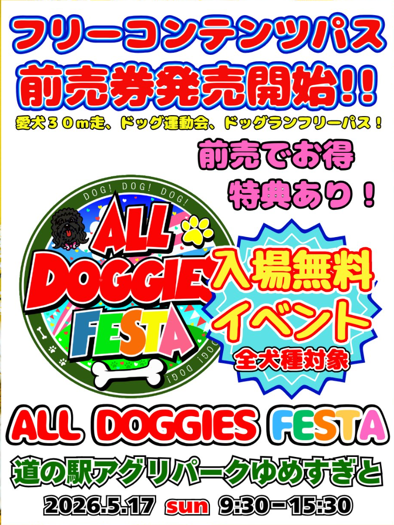 ALL DOGGIES FESTA 2026 SPRING in アグリパークゆめすぎとの公式ページを見る