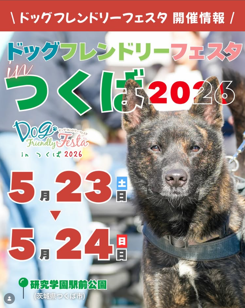 - ▶⑩2026年5月23日(土)・24日(日)開催!「ドッグフレンドリーフェスタinつくば2026」【茨城県・つくば市】
