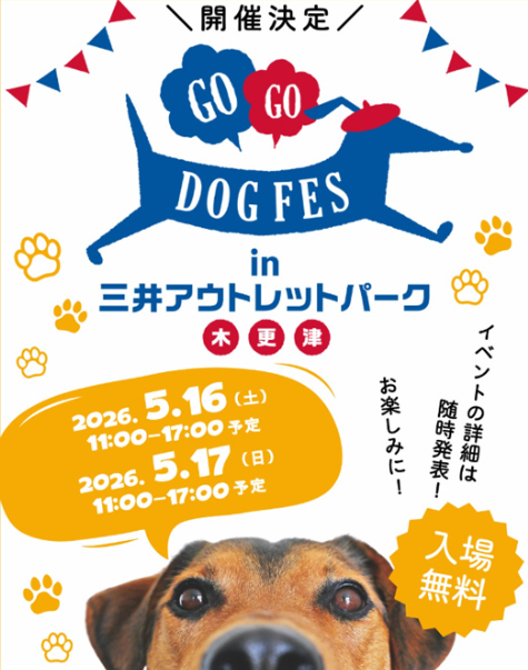 - ▶⑦2026年5月16日(土)・17日(日)開催!「GOGO DOG FES三井アウトレット木更津2026」【千葉県・木更津市】