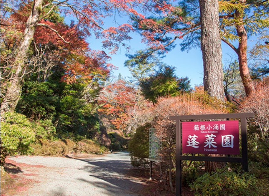 箱根湯本駅から箱根登山バス(H路線)約19分「蓬莱園」バス停下車すぐ