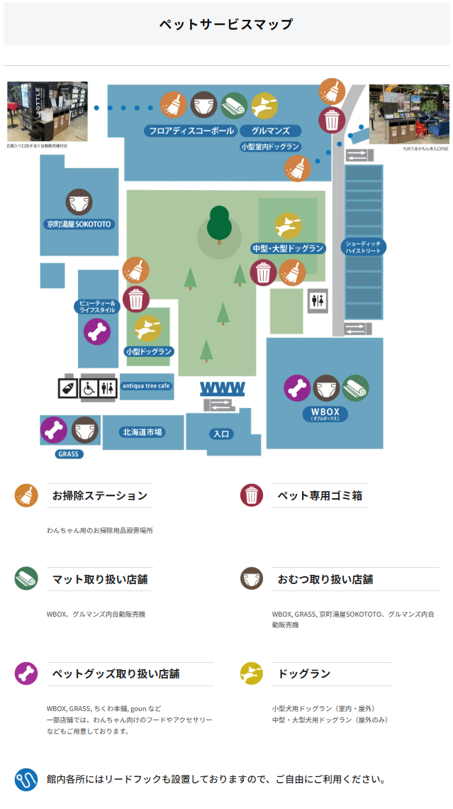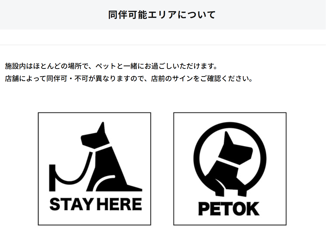 ✔ 各ショップや飲食店では同伴可否がそれぞれ異なるため、入口表示を必ず確認すること
