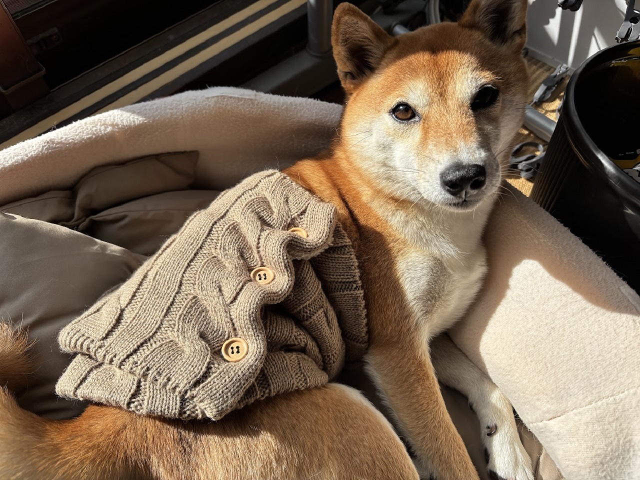 筆者の三代目柴犬つむぎは、現在5歳のアダルト期ですが去年の冬頃から腹巻を着用させるようになりました。