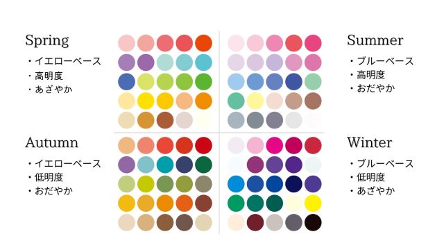 例えば瞳の色が明るめの茶系であれば『Spring(春)』、グレー系であれば『Summer(夏)』、焦げ茶系であれば『Autumn(秋)』、黒色系であれば『Winter(冬)』となります。