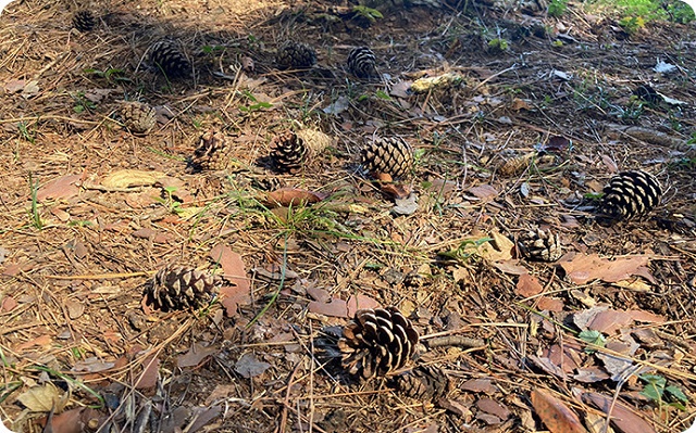▽『役目を終え、地面に落ちた松ぼっくりたち』