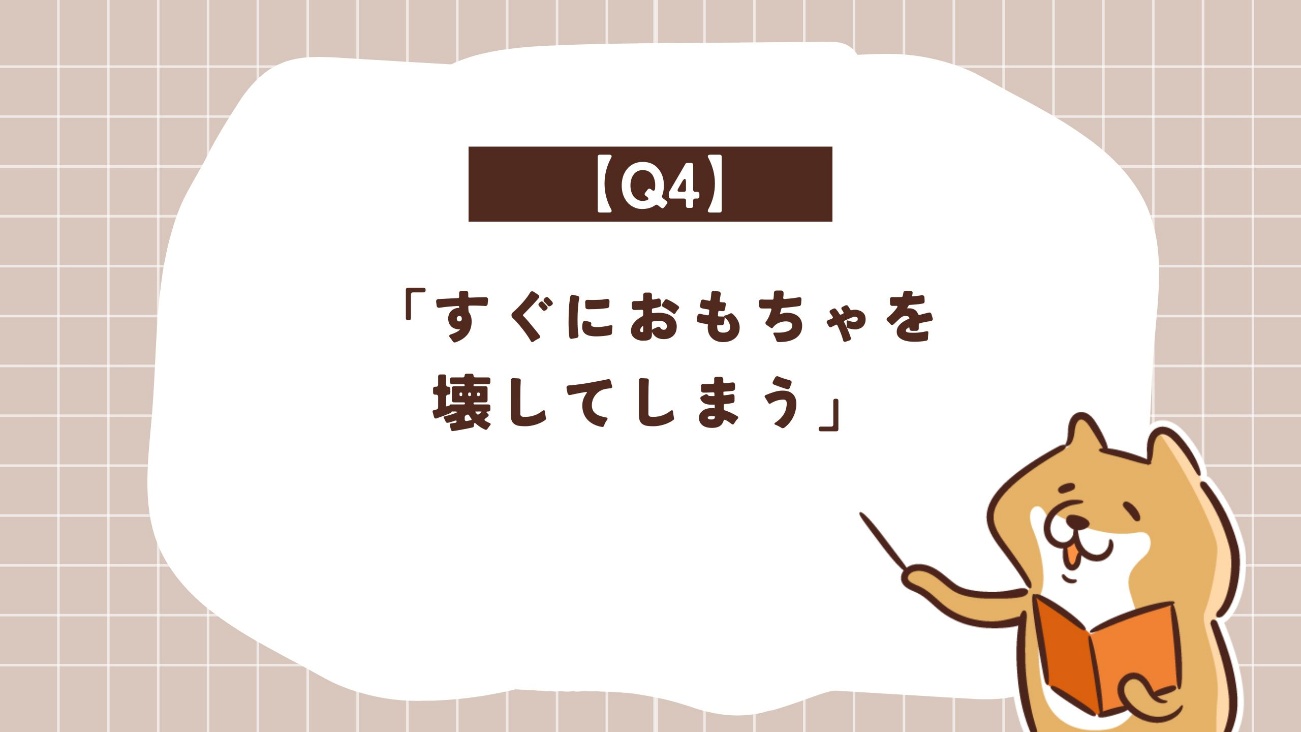 A.「すぐ壊すからと硬すぎるおもちゃはNG、おもちゃの管理を見直してみましょう」