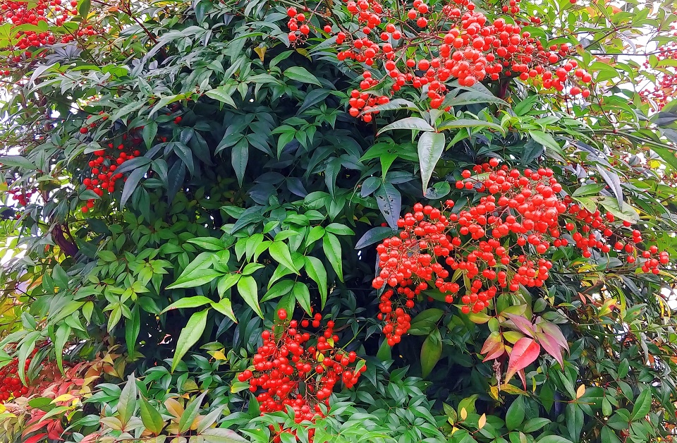 ナンテンは、その植物全体に有毒成分を含んでおり、特に赤い実の部分に毒が多いのが特徴です。