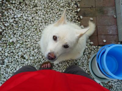 「ママ、おやつ下さい♪」ポーズの愛犬にい...