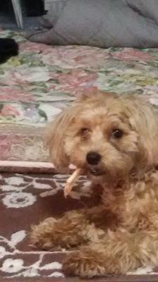 モコが5ヶ月の頃、散歩デビューに備え家で...