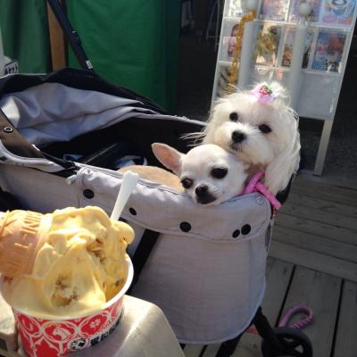 アイスを目の前にしたマロン(左)とチョコ...