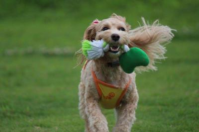 大好きなカエルのおもちゃを咥えて走る姿が...