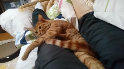 疲れて横になったら、なぜか足の間に。寂し...