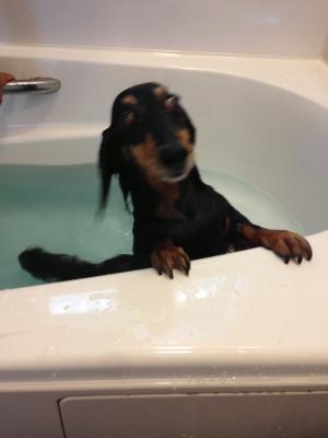 お風呂の残り湯に愛犬シータをポチャンと入...