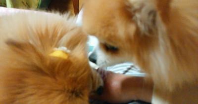 ポンコが、飼い主の手をなめ、ポンがポンコ...