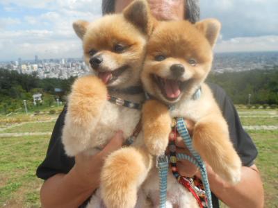 双子のポメです。札幌市内が見渡せる野生の...