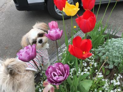 紫陽花を前に大欠伸をしている愛犬!ベスト...