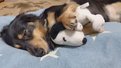 室内ドッグランで遊んでる時の表情が笑顔で...