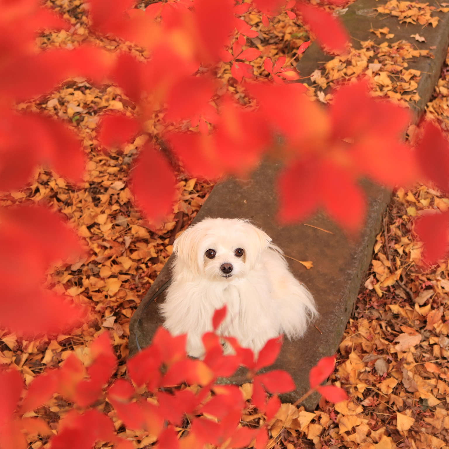 落ち葉の上で