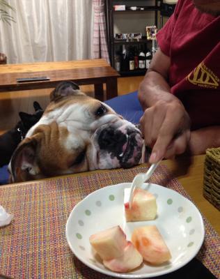 毎朝ヨーグルトを食べてるとお座りをして待...