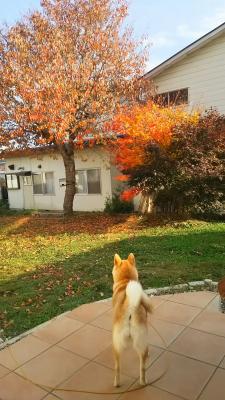 我が家の庭の桜とモミジの紅葉に見とれてい...
