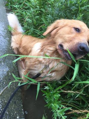 散歩の途中で暑すぎて用水路に浸かって気持...