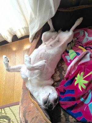 この姿勢で寝るのが習慣でーす! 警戒心...