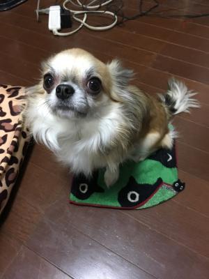 もうすぐ2歳のチワワの諭吉くん。彼は床に...