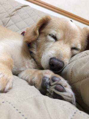 ズボン噛んで遊んでたら鼻がベルト通しの穴...