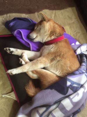 あったかいベッドの上で寝てしまいました。...