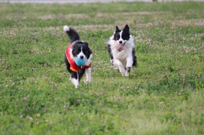 広場で楽しく遊ぶ2匹。 思いっきり走る...