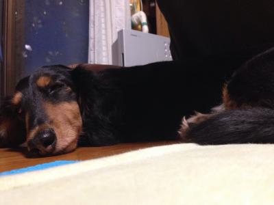 ヘソ天で寝ているところを逆から見ると笑顔...