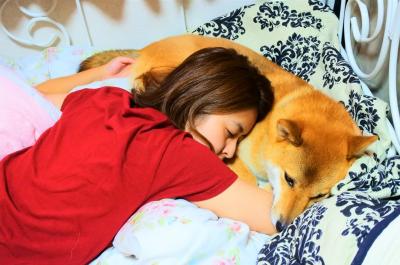 弟とさいきん仲良しになって添い寝するうちの犬