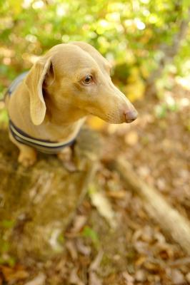 紅葉の紅色を背景にして、お友達わんこを撮...