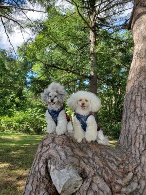 紅葉をバックにお友達わんこと一緒に記念撮...