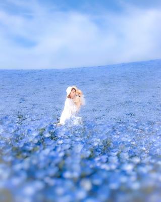 ネモフィラの中で兄妹チワワの内緒バナシ姿...