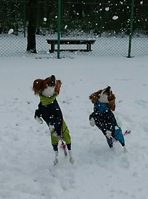 冬が大好きな2人 仲良く雪玉キャッチ中