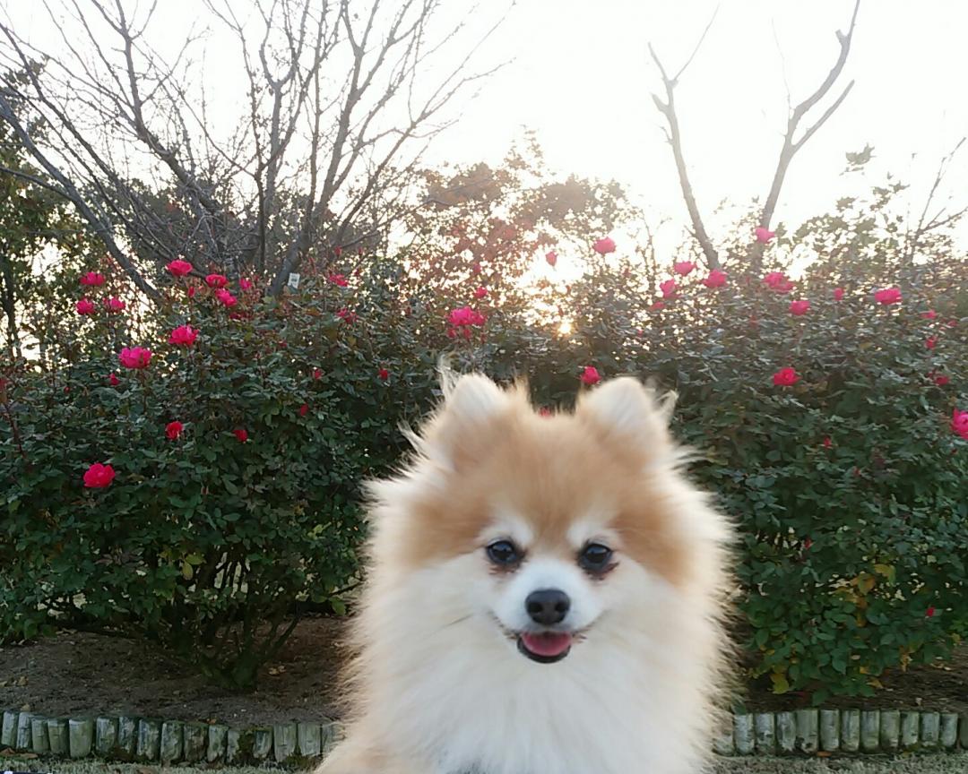 高岡おとぎの森公園 バラの名前は、「ノックアウト」 綺麗なバラですよ そしてポンの笑顔が大好きです!