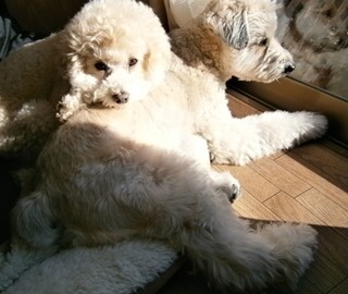 外は風が吹いて寒いから くぅ兄ちゃんの背中はおっきくて暖かいからくっついてお昼寝。