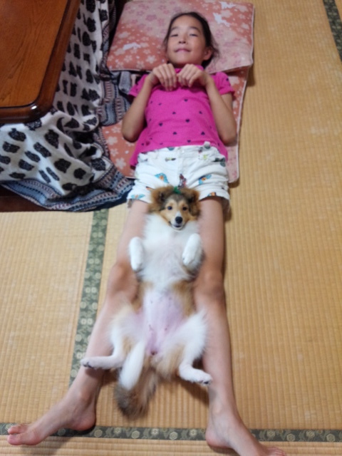 仲良しな娘とグレースは、同じポーズをよくします。この時も畳が気持ち良いとこのポーズになりました。