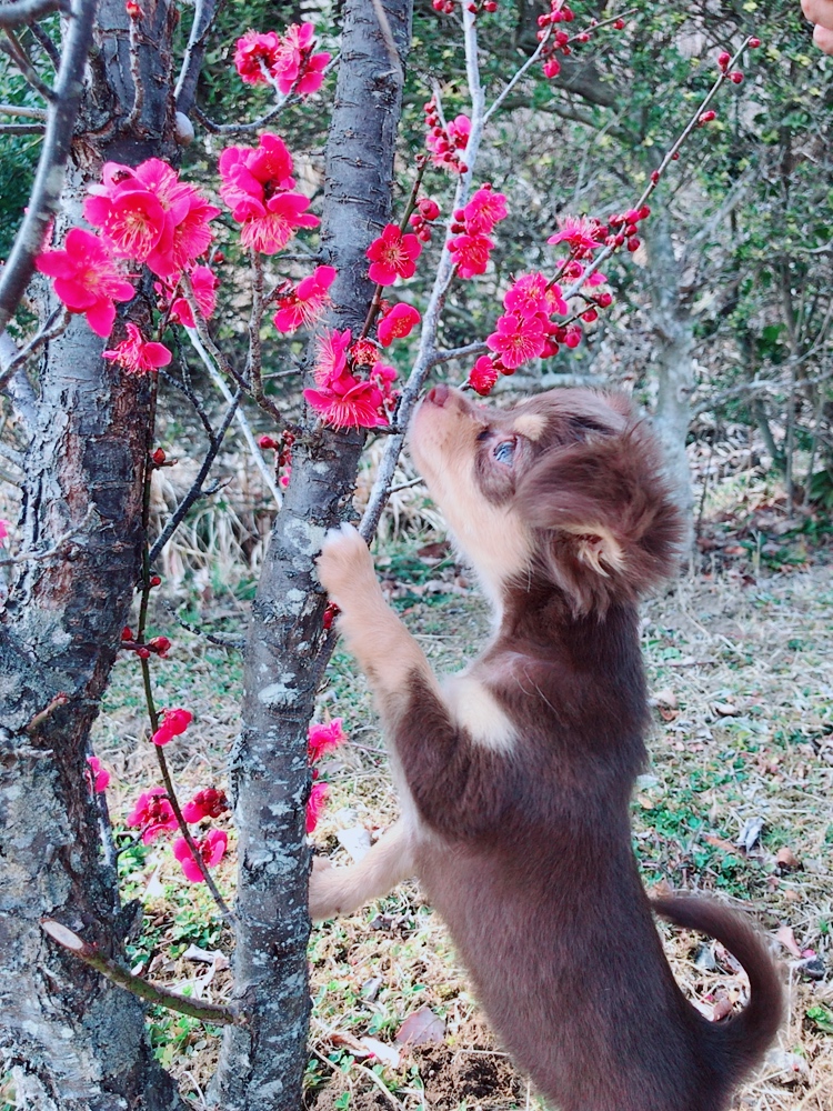 初めてのお散歩で小さい梅の木発見