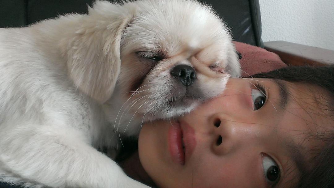 娘のほっぺが気持ちよく落ち着くらしく、ほっぺに顔を乗せて熟睡です(о´∀`о)