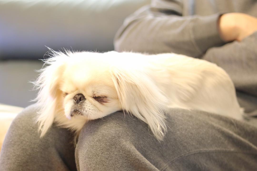 膝の上が大好き‼︎ すぐ寝ちゃいます♡ 寝にくくないのかなぁ?