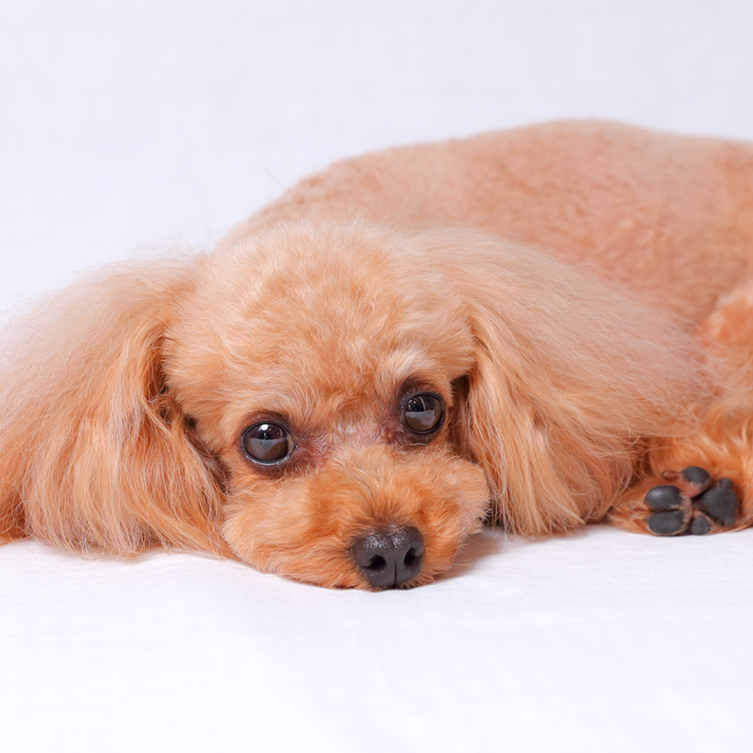我が家のトイプードル・ハル(アプリコット♂4歳)です。お家でお写真を撮っている途中で、ちょっとお休み。無邪気な顔は、見ているだけで癒やされます。