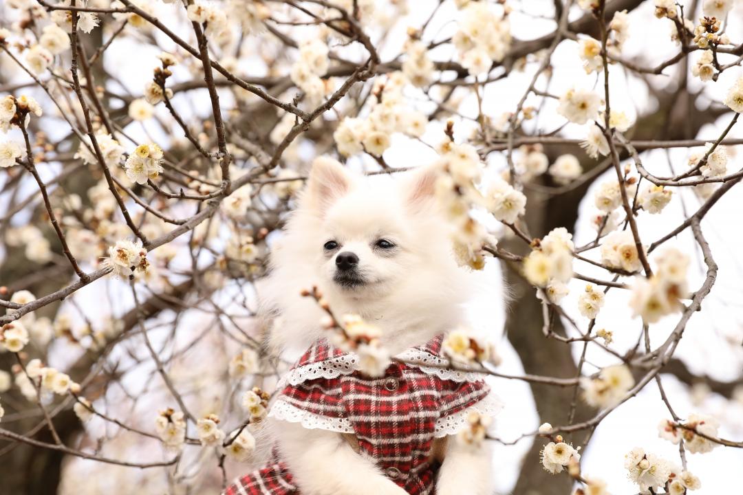春を求めて梅園に。 愛犬にとって初めての春、何を感じたかな?