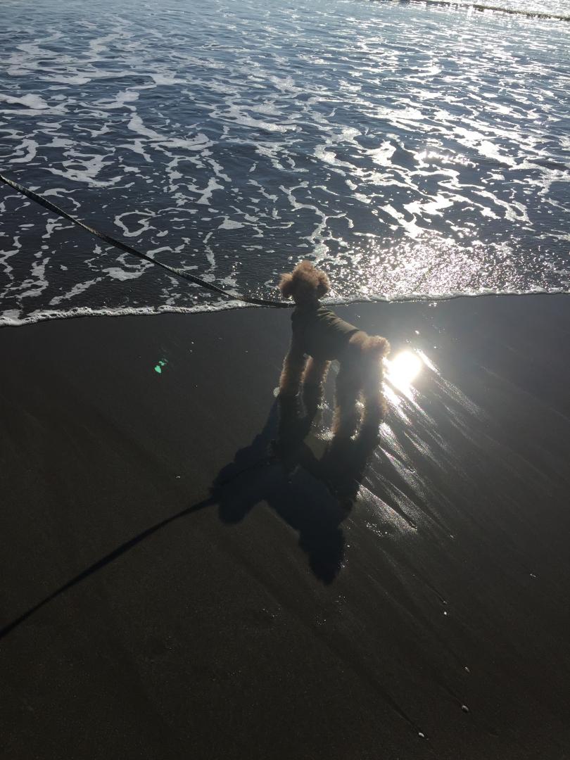 初めての海体験でした。怖がるのかな?と思いきや、波打ち際で楽しそうに遊んでました。そして、夏の陽が沈む頃…。